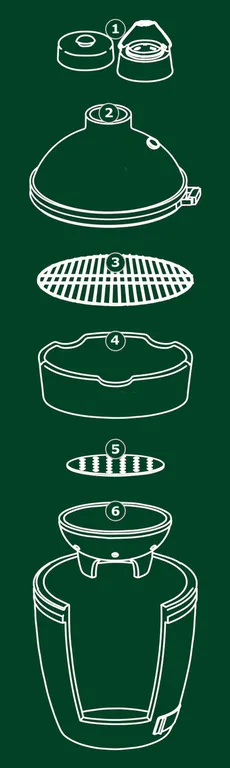 Керамический купол с дымоходом можно легко открывать и закрывать благодаря пружинному механизму. Снаружи керамика покрыта двойным защитным слоем глазури. Теплоизоляционные свойства керамического материала создают поток воздуха внутри EGG, обеспечивая быстрое и равномерное приготовление вкусных блюд.